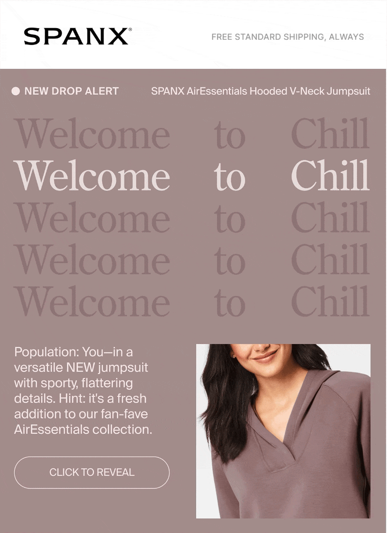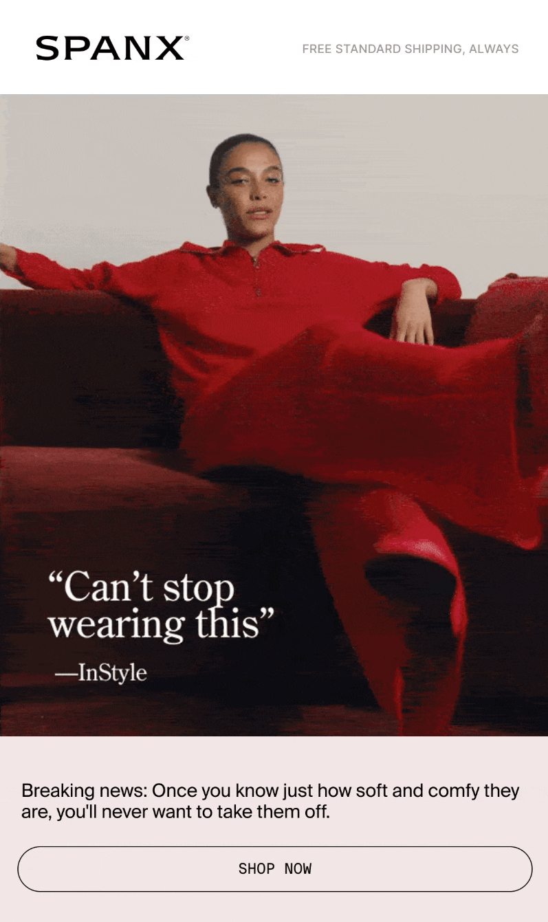 Over truly thousands of emails, social media ads, and page refreshes, I co-led the strategic shift from “punny” jokes to more assured, modern, and deft language that shows how SPANX consistently thinks more about how their products fit, feel, and flatter women’s bodies. I took the initiative to pursue and persuaded other departments (product development, design, product marketing, web sales) for exciting stats and angles that helped me craft campaigns responsible for over $1.5M in new revenue, regularly above sales team projections.